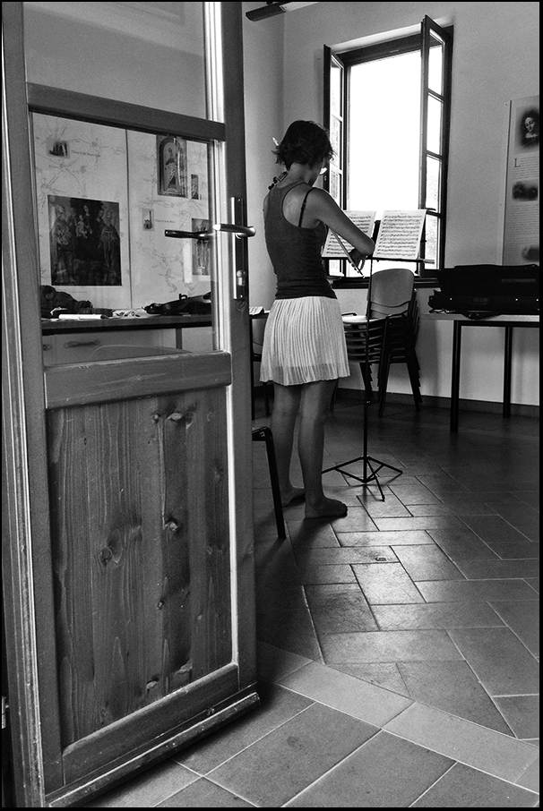 note di violino si librano in un torrido pomeriggio estivo, leggere nell' aria attraverso una porta e una finestra lasciate aperte